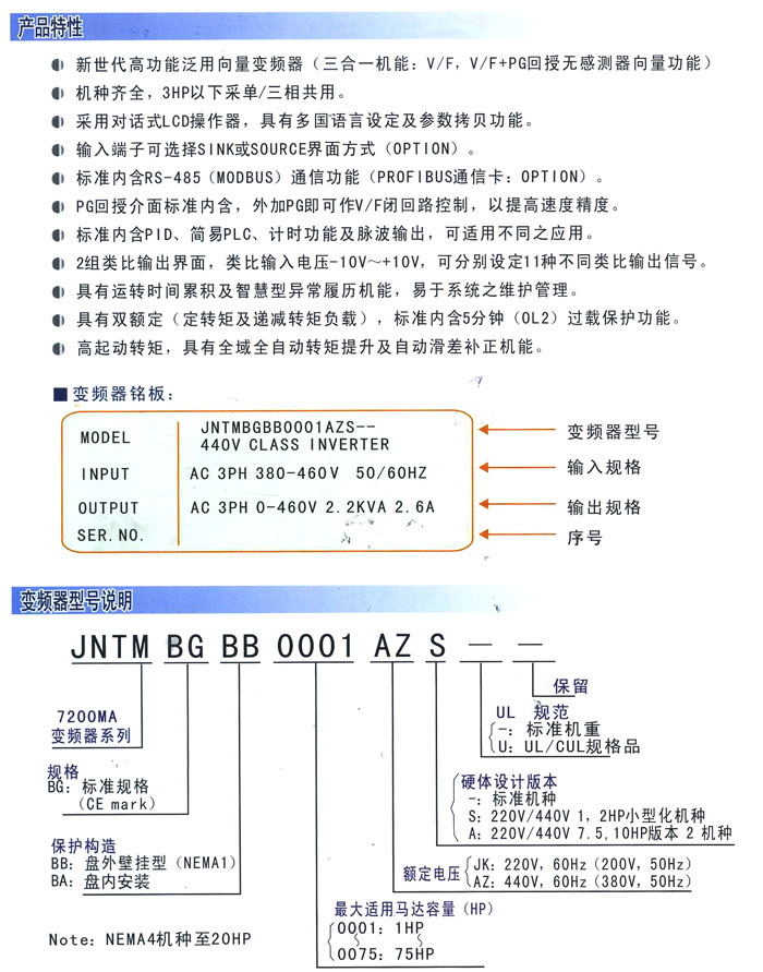 產(chǎn)品名稱:東元7200MA系列通用型變頻器