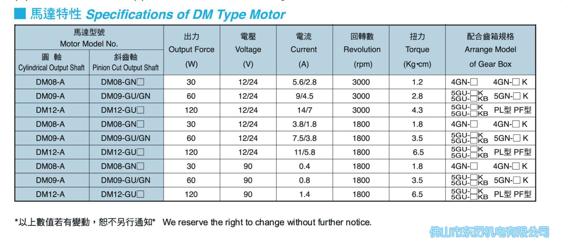 產品名稱:DM型 直流馬達減速機